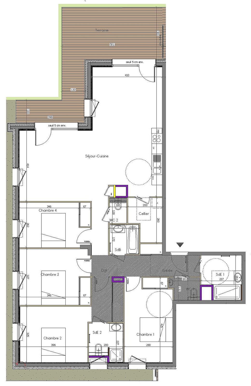 Apartment A002 is a 4 bedroom apartment on the ground floor with 3 bathrooms and a terrace. The apartment is oriented north.