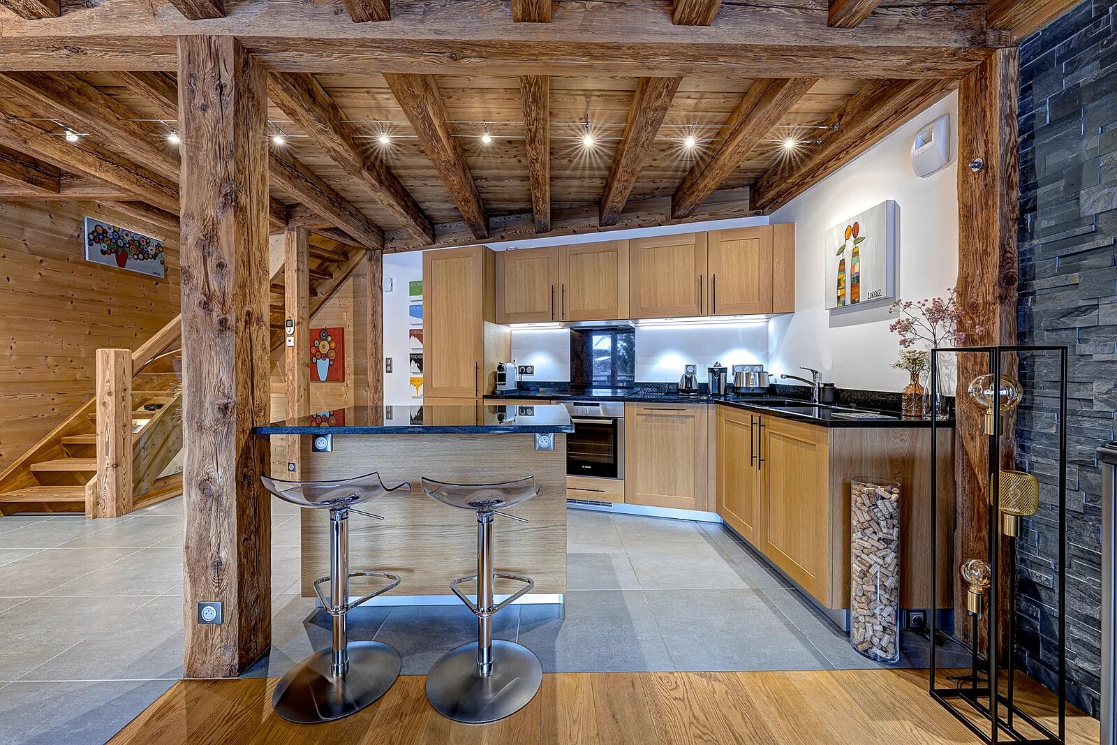 Altavista is a 2-bedroom chalet with an additional bunk room/office space and 1 bathroom, positioned close to the heart of Morzine, just steps from shops, bars and a ski bus stop. Built in 2016, it combines modern construction with characterful wooden beams and a consistently high-quality finish.