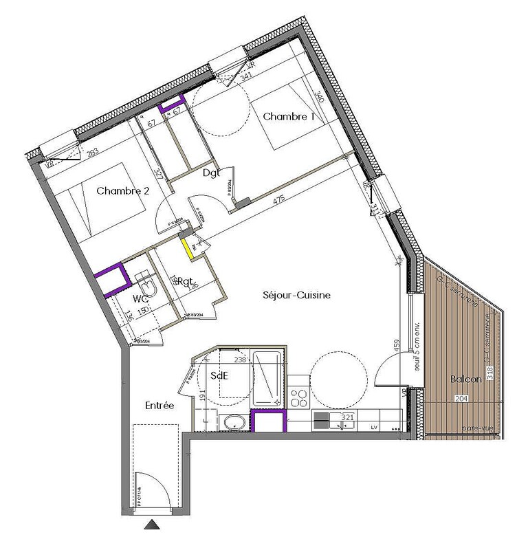 Apartment A102 is a 2 bedroom apartment on the 1st floor with 1 bathroom and a balcony. The apartment is oriented north-east.