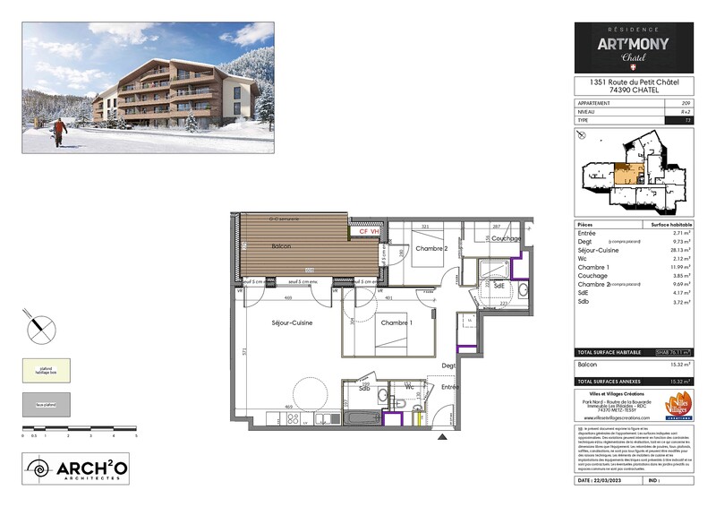 A new project of 29 apartments in a chalet style building inspired by Abondance farmhouses, using traditional stone and wooden cladding. This residence is in a sought-after location, perched above central Châtel, offering unobstructed, panoramic views of the valley and mountains.