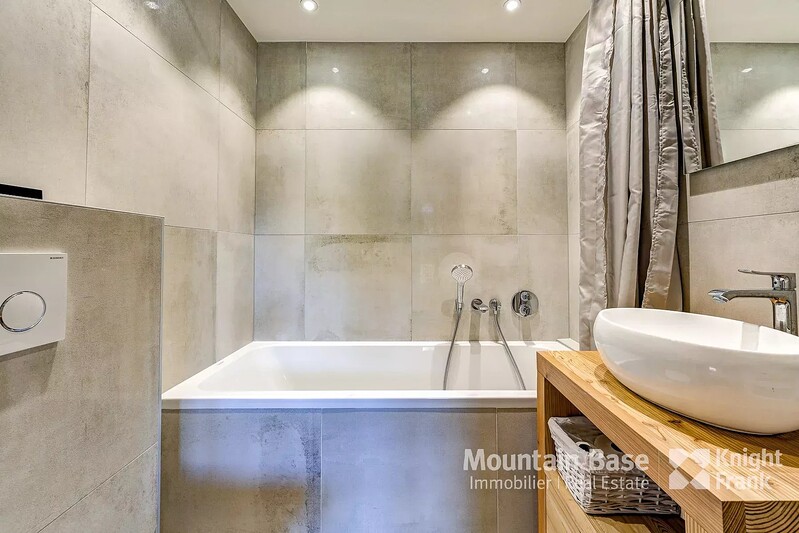 A modern, recently built 4/5 bedroom, 4-bathroom demi-chalet in the heart of les Frasserands. The property is on three levels with bedrooms at ground and lower-ground level, plus a mezzanine above the living space on the first floor. The master suite has an adjacent room which is currently used as a large dressing room, but could equally be a 5th bedroom.