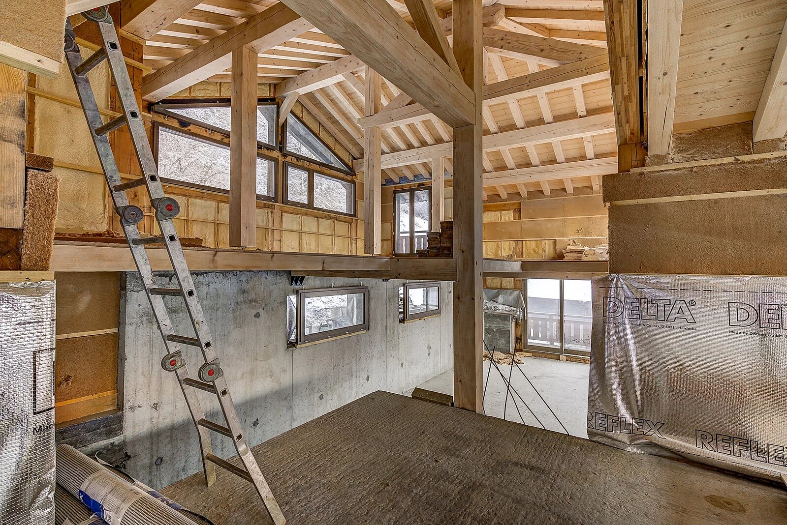 The chalet is on 3 levels and is currently designed with 4 ensuite bedrooms and a large, open-plan living space. The project requires the installation of all electrics, plumbing and internal finishes with an estimated cost of €3,000 per m², although a number of economies could be made.