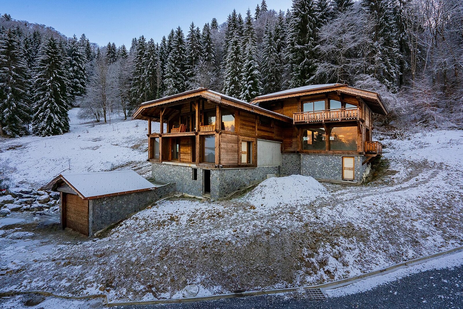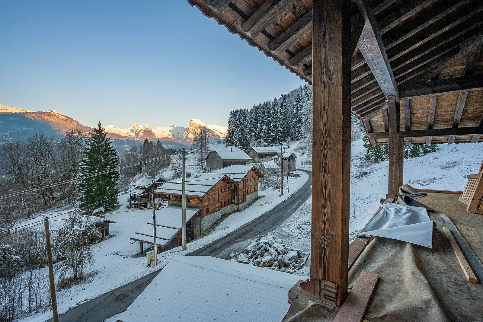 Chalet Couzy is a brand new, 300m² property completed to external shell, leaving the interior for a buyer to complete to their own layout and finish. It is situated above the village of Morillon on a quiet road with open views over the valley to the peaks beyond. The chalet sits on a sizeable plot bordering the forest.
