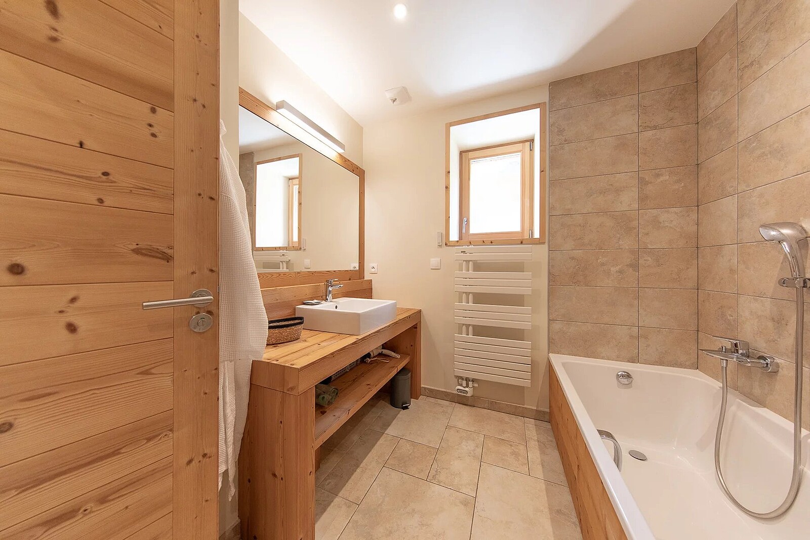 Arranged over three floors, the chalet boasts an impressive double-height living space, with bedrooms distributed across all levels. Additional features include a sauna /massage room, games room, garage/ski room, lots of storage, gardens, and a spacious deck with a hot tub. Chalet Fleurs benefits from a modern heating system and holds a rare ‘B’ energy rating—an unusual advantage that sets it apart in terms of efficiency while also safeguarding it from future improvement requirements.