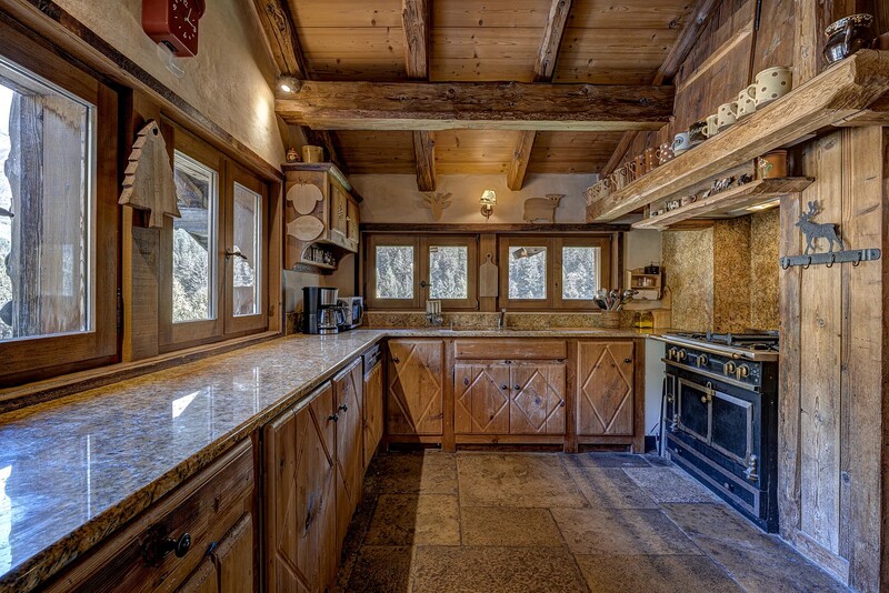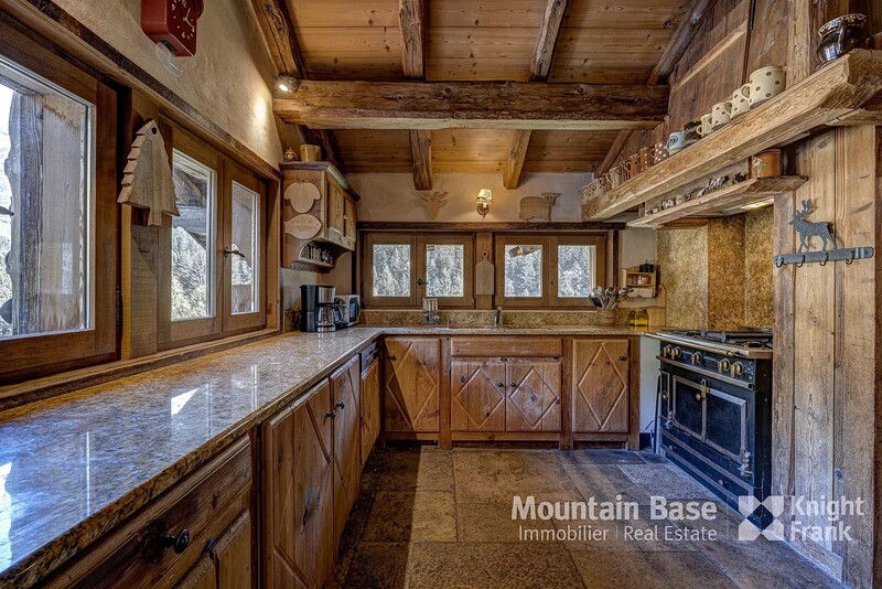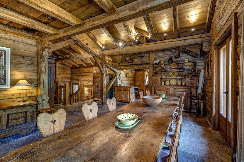 Chalet Hana is a stunning 6-bedroom property located in the quiet hamlet of Les Frasserands above Argentière. Built in 2000 using reclaimed stone and timber sourced from farmhouses in the Beaufortin region, it combines traditional Alpine style with exquisite artisanal craftsmanship. Set on a plot of nearly 3,800 m², it enjoys a calm, elevated position with open views across to the Mont Blanc massif and the Grands Montets ski area. Chalet Hana beautifully blends the classic with the contemporary; while the flagstones throughout the first floor were recovered from churches and châteaux in Burgundy, the heating system is brand new, featuring remotely controlled underfloor heating throughout.