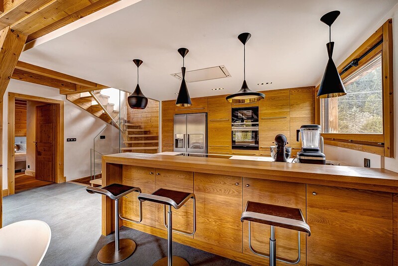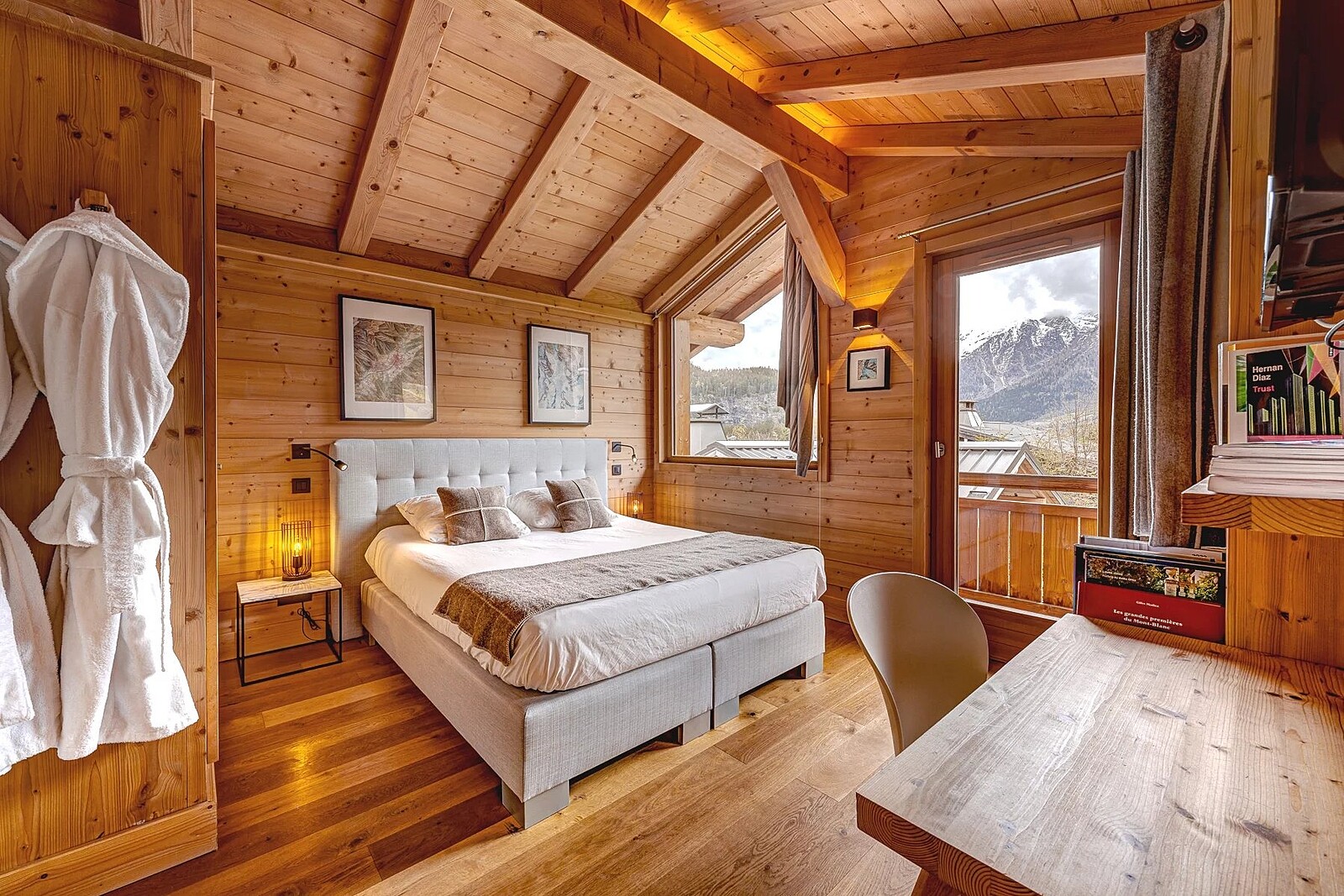 Chalet Marbre is in the highly sought-after Chavants sector of Les Houches and blends traditional alpine architecture with contemporary finishes. Cathedral ceilings and large openings frame panoramic views of the Mont Blanc Massif, while the peaceful setting is just 400m from the nearest ski lift.