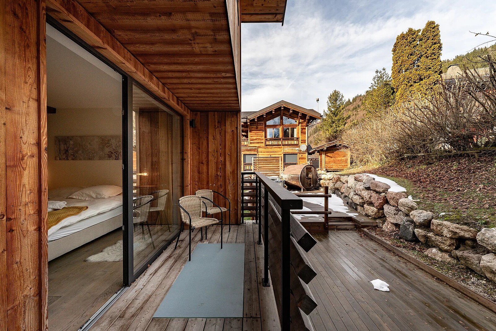 Completed in 2022, the property has an A-rated energy efficiency and a modern, Alpine design with generous volume throughout. All the bedrooms are en suite, including a 25m² master suite on the top floor with additional height overlooking the gardens to the rear. The chalet also has a cinema room, gym, outdoor jacuzzi and barrel sauna with mountain views.