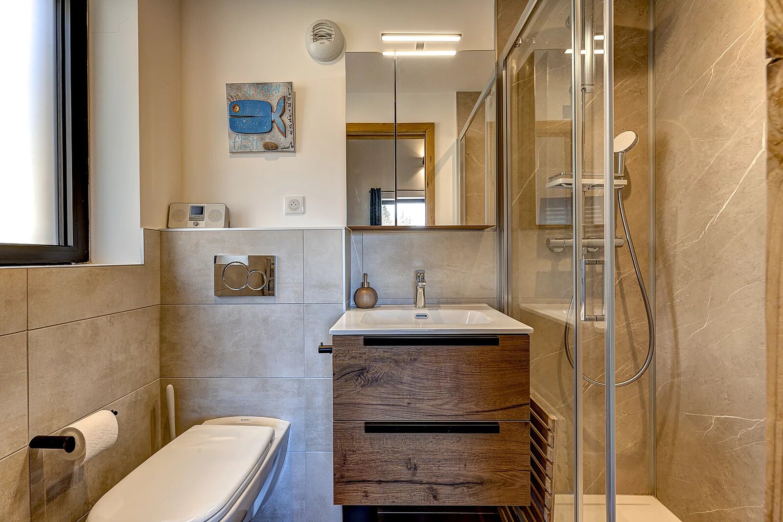 With triple-glazing, high insulation and underfloor heating via an air-source heat pump, the chalet is thermally efficient and low-cost to run, receiving an A on its diagnostic report.