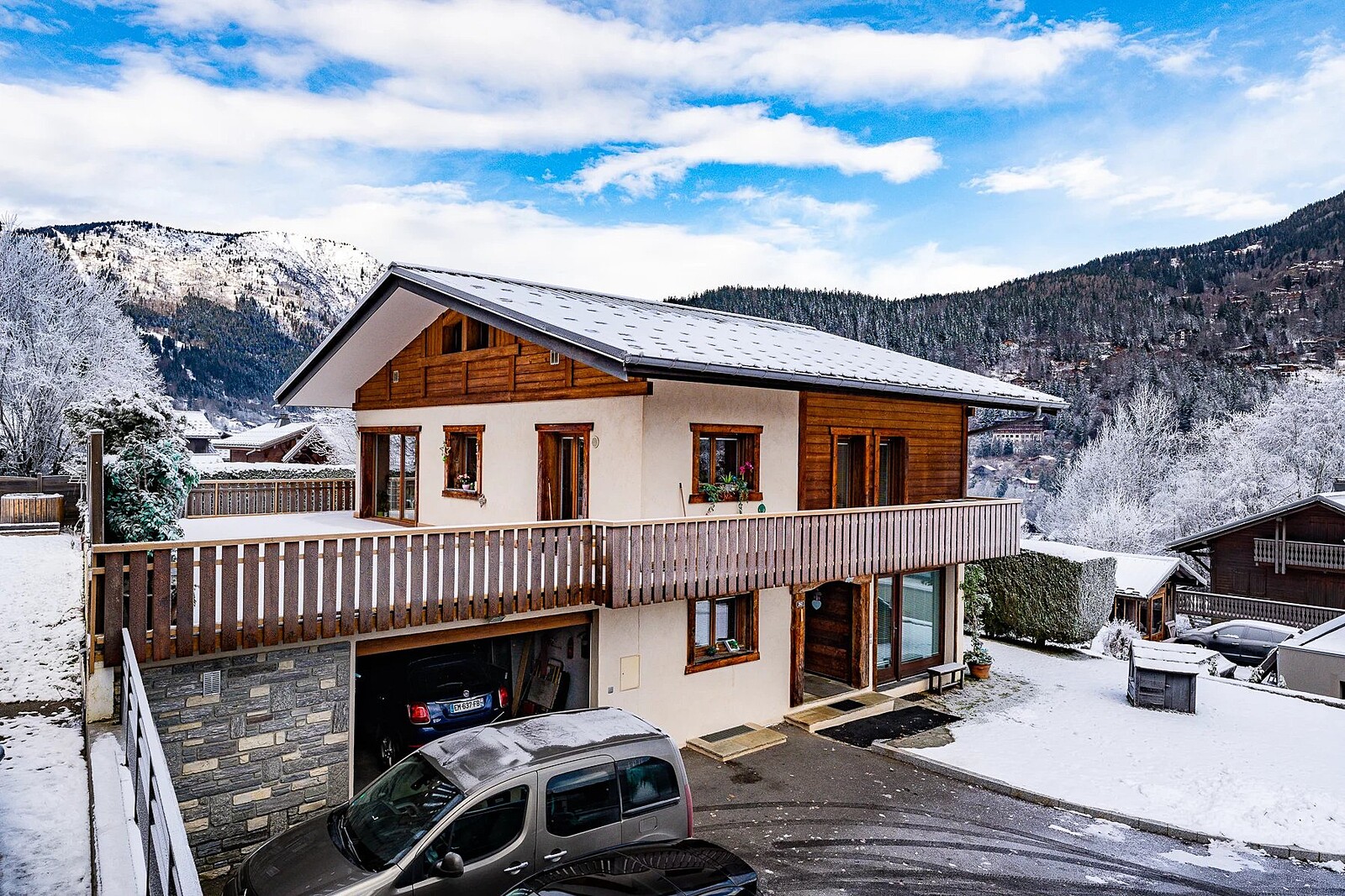 Chalet Primavera is in a fantastic location, just a short walk from all amenities in the center of Les Houches. The property offers generous space, including a sun-drenched terrace, a four-car garage, an independent apartment, and a sizable garden. It would be ideal as a "lock-up-and-leave" holiday home or as a family residence.Agency fees