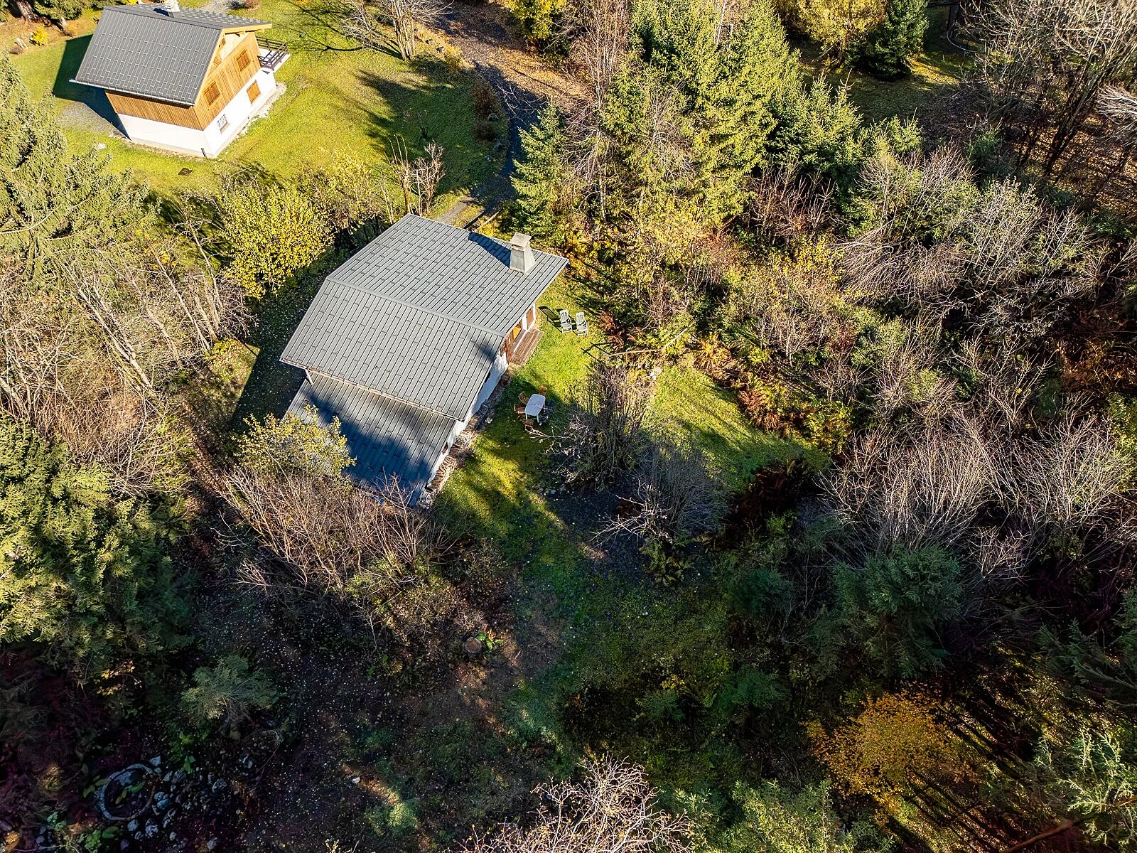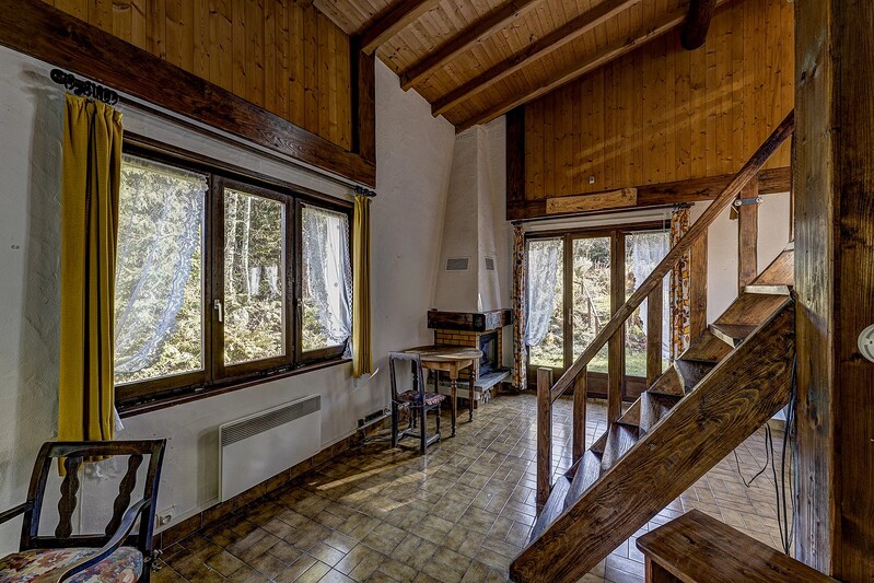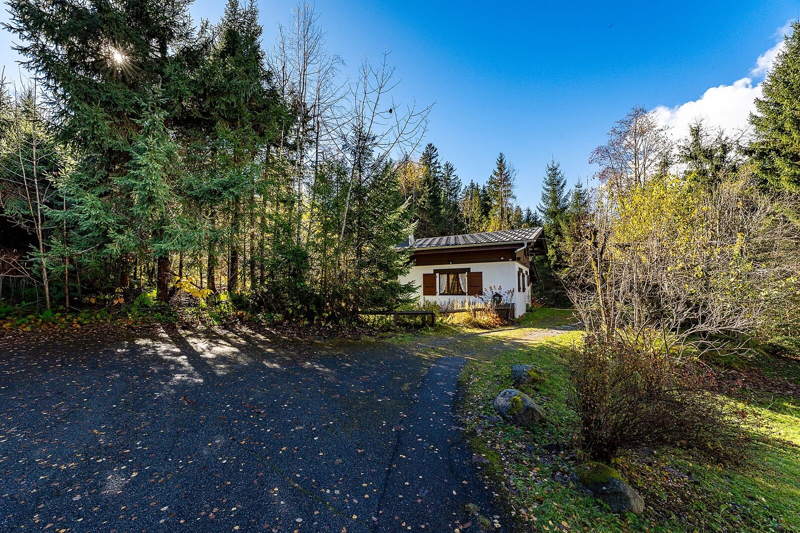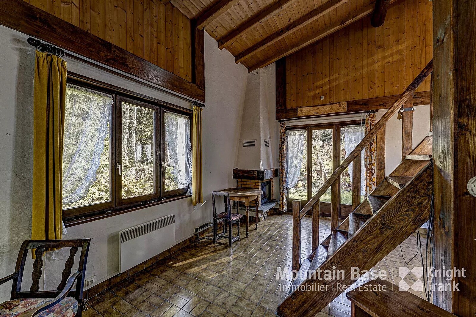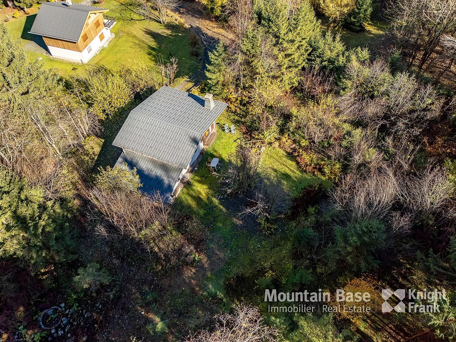 The plot is expansive, featuring well-established forest, rockery, and a mill wheel. The chalet sits at the end of a private cul-de-sac. Views across the Mont Blanc Massif are stunning from the living area and would certainly form the focal point of any renovation.