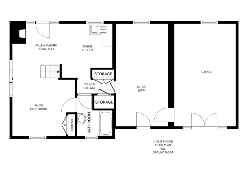 Chalet Pivoine is a 115 m² chalet set on an impressive 2,400 m² plot within walking distance of Chamonix centre. In its current configuration, the property comprises an open-plan ground floor with bathroom and toilet. Upstairs there are two double bedrooms and a large mezzanine. There is also a garage with a spacious cellar and utility room.