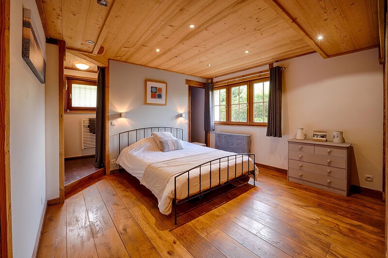 The living area opens onto a small, flat garden and good-sized terrace with fabulous views of the Bossons glacier, Aiguille du Midi, Dôme du Gouter and Mont Blanc itself.