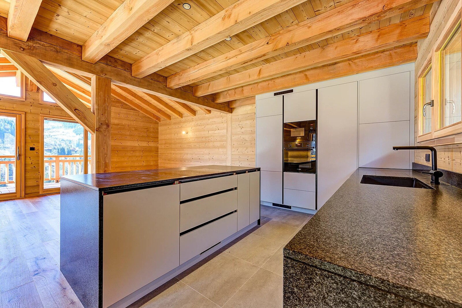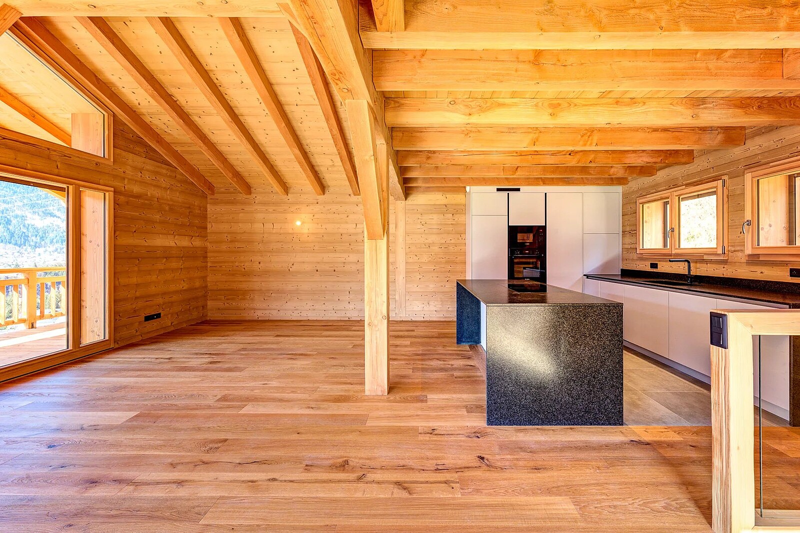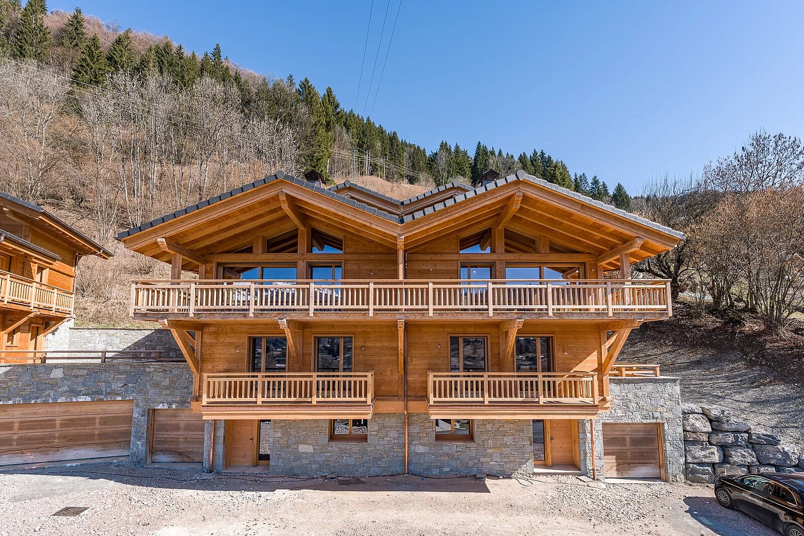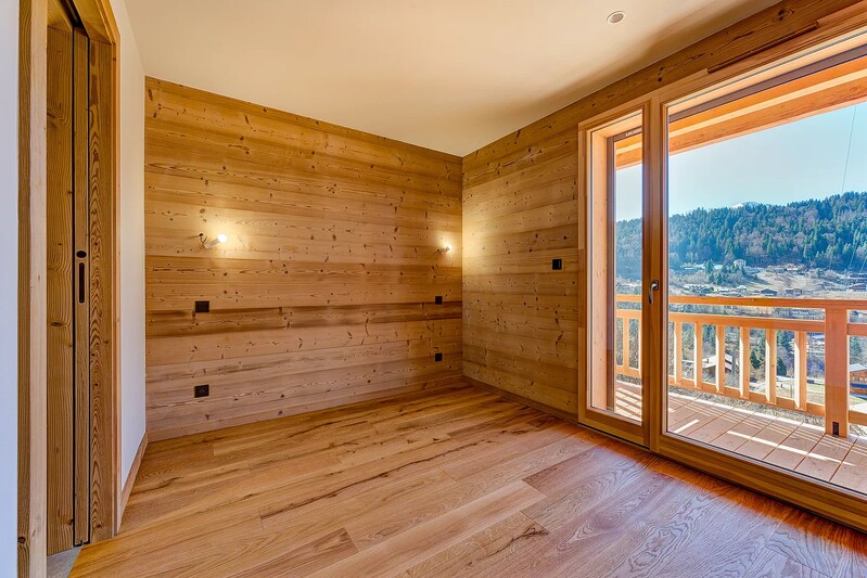 With a south-west facing aspect in an elevated position, the chalet enjoys plenty of year-round sun and uninterrupted views. The chalet has been designed to maximise the light and views with a double-height living space on the 2nd floor opening onto a large balcony terrace which includes a jacuzzi. As a new-build, buyers can select from a range of finishes including the kitchen and bathrooms, flooring and tiles.