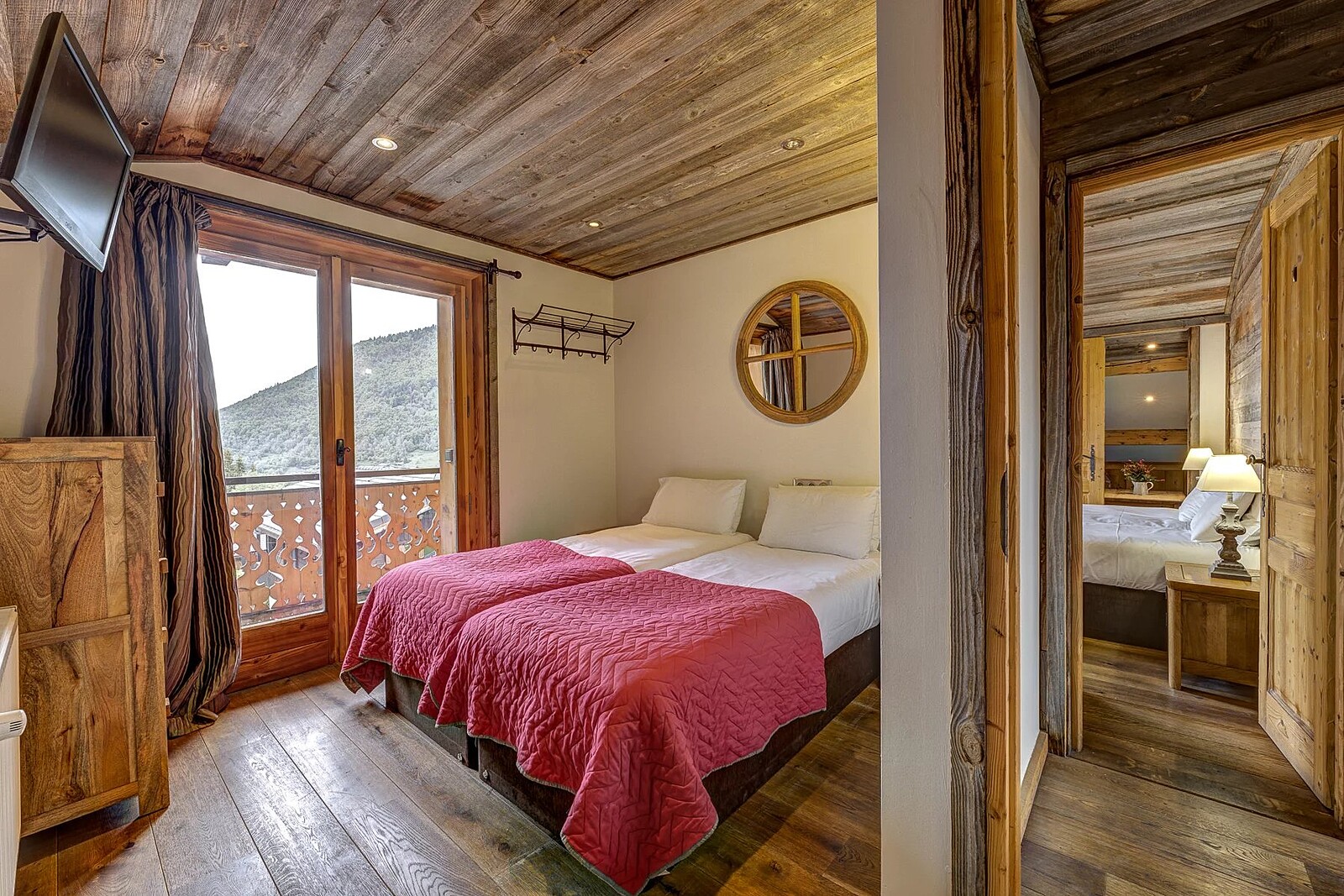 Located close to the centre of Morzine, there is also a ski bus stop right outside the property. The chalet benefits from great views towards both the villages of Montriond and Morzine
