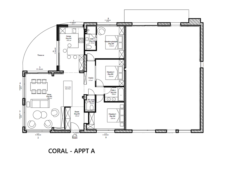 Coral A is an impressively large, 3-bedroom apartment to the south-west of Chamonix centre, that will be renovated to a high standard. With admirable ceiling heights (3.5 metres) and sizeable windows, the apartment will be full of light and volume, augmented by a good-sized terrace to make the most of the wonderful views.