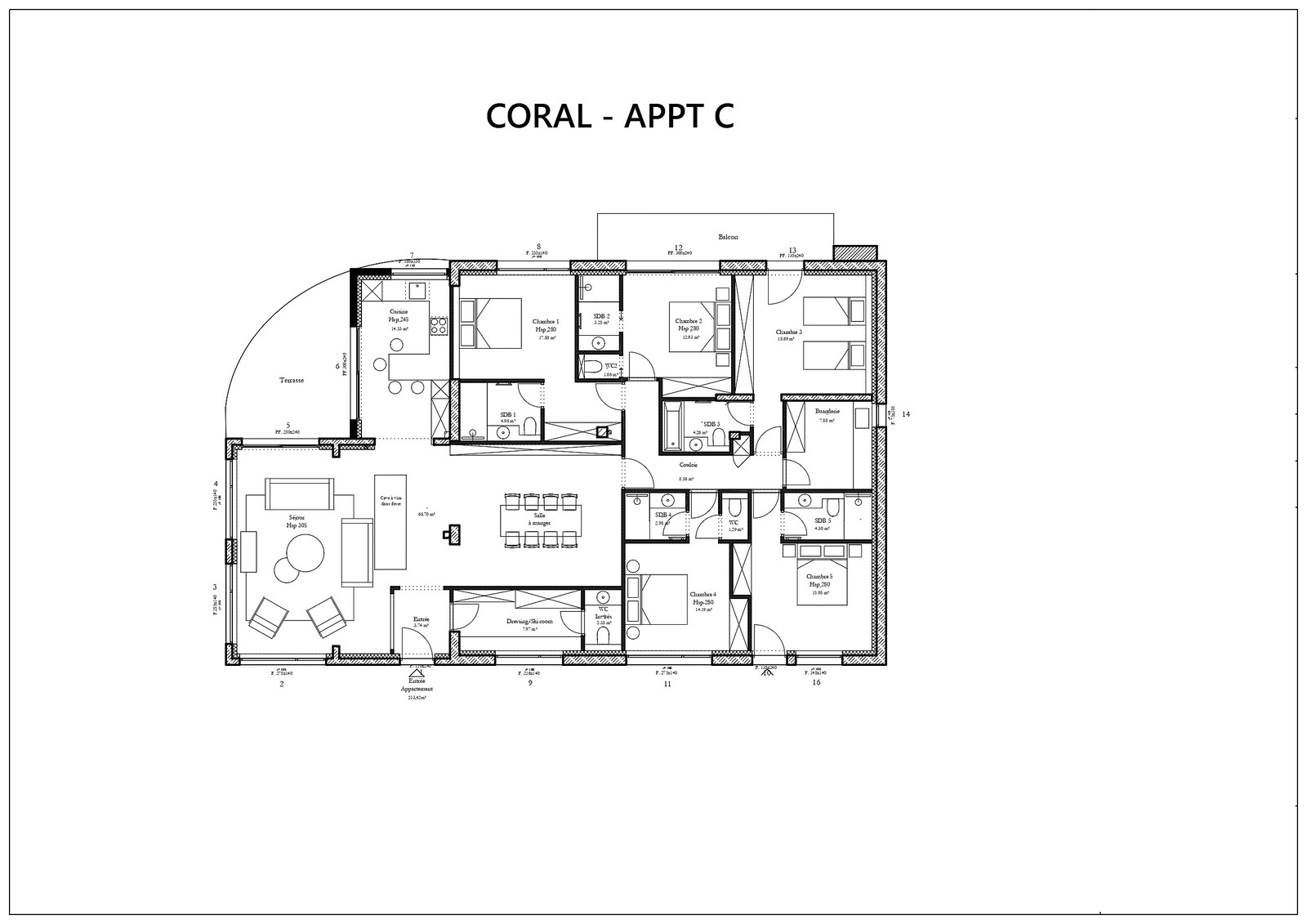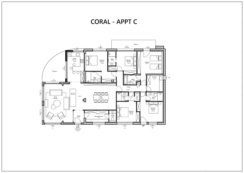 Coral C is an impressively large, 5-bedroom apartment, to the south-west of Chamonix centre, that will be renovated to a high standard. With admirable ceiling heights (3.5 metres) and sizeable windows, the apartment will be full of light and volume, augmented by a good-sized terrace to make the most of the wonderful views.