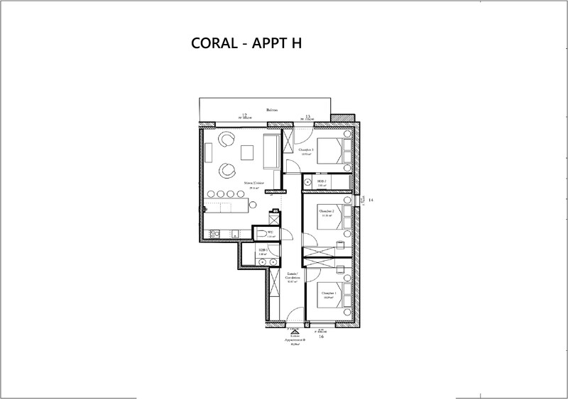 Coral H is an impressively large, 3-bedroom apartment to the south-west of Chamonix centre, that will be renovated to a high standard. With admirable ceiling heights (3.5 metres) and sizeable windows, the apartment will be full of light and volume. There is a good-sized, south-facing terrace to make the most of the wonderful Mont Blanc views as well as a balcony on the other side of the building with views of Brévent.
