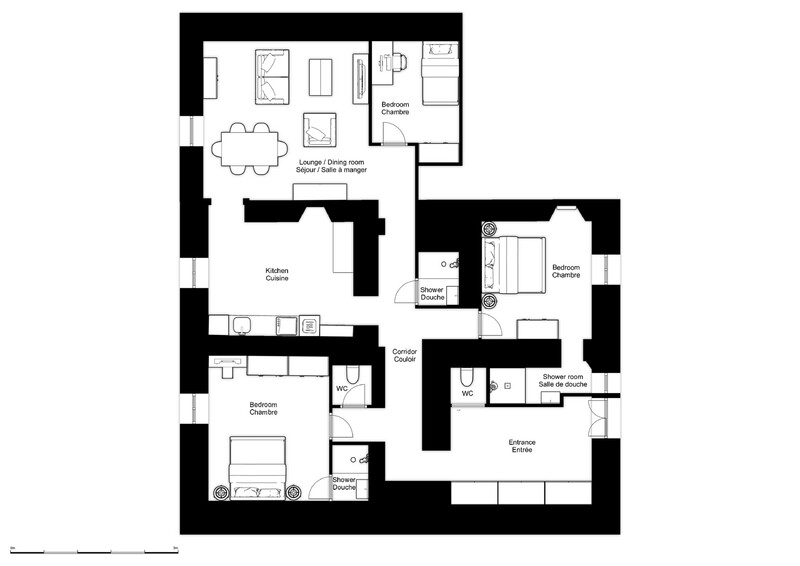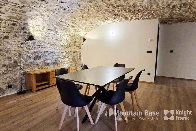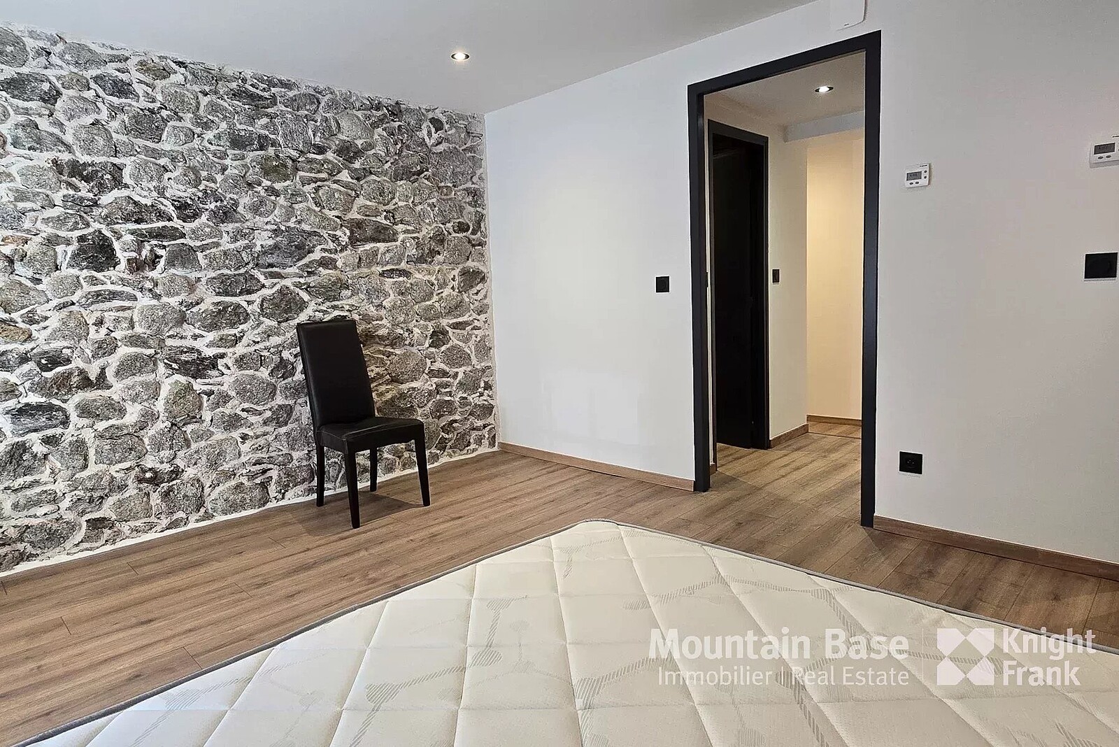 A recently refurbished, 3-bedroom, 3-bathroom apartment situated in the heart of Chamonix, just off the Avenue Michel Croz. This stylishly renovated apartment uses a classic mix of original stonework and modern wood cladding, creating a warm, authentic feel throughout. The apartment has a modern kitchen from Mobalpa and a large, yet cosy, living room. There is access to a small courtyard adjacent to the entrance. The third bedroom is a single room which would suit bunks or perhaps an office.