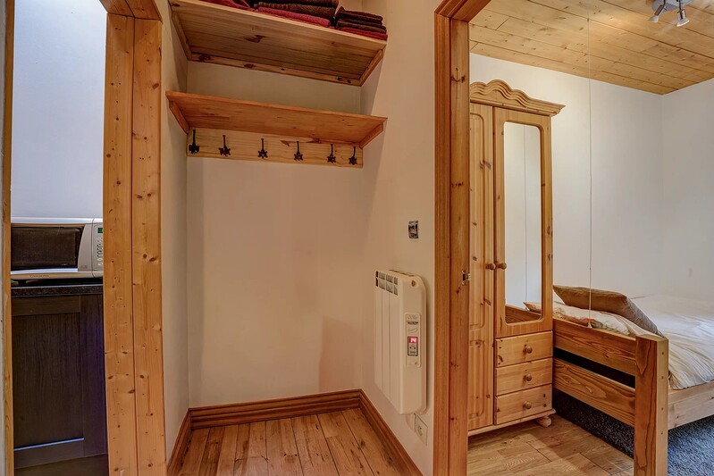 Located in the village of Les Bossons, just a 5-minute drive from the centre of Chamonix, Apartment Eden is a compact two-bedroom apartment in a small building of only five apartments, offering a quieter and more intimate co-ownership. The property enjoys a convenient position in the valley, with Taconnaz train station less than a minute’s walk away, providing easy access along the Chamonix valley.
