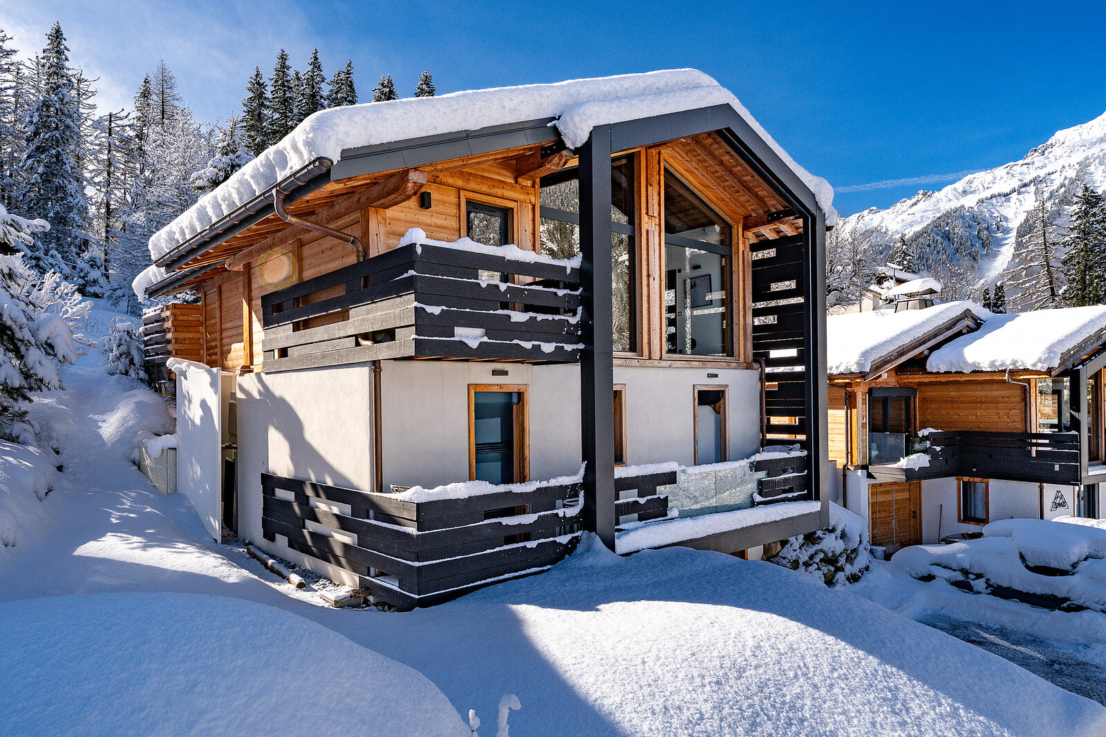 - Elevated position and huge windows giving uninterrupted mountain views to the end of the Chamonix valley