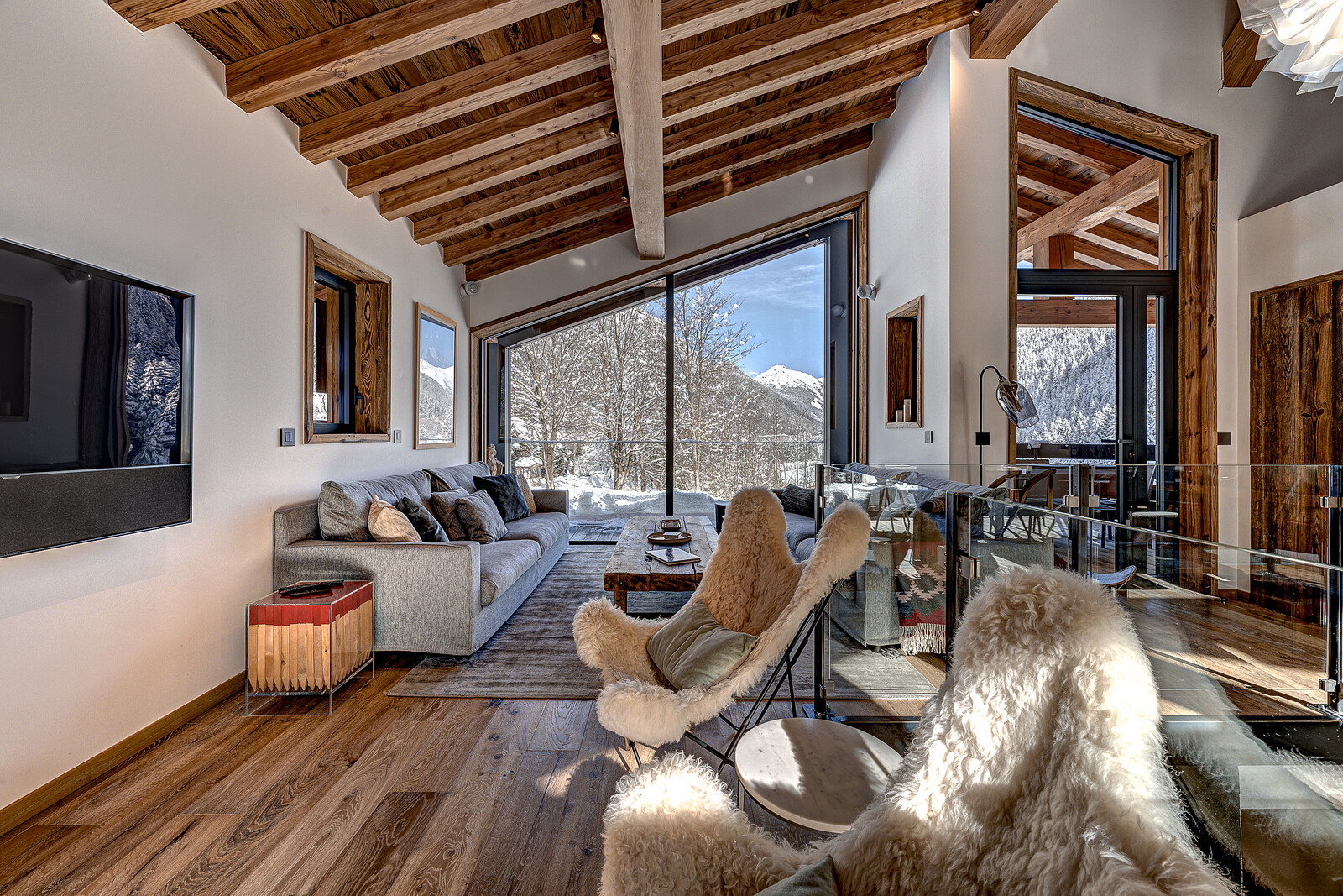 - Elevated position and picture windows with beautiful mountain views to the end of the Chamonix valley