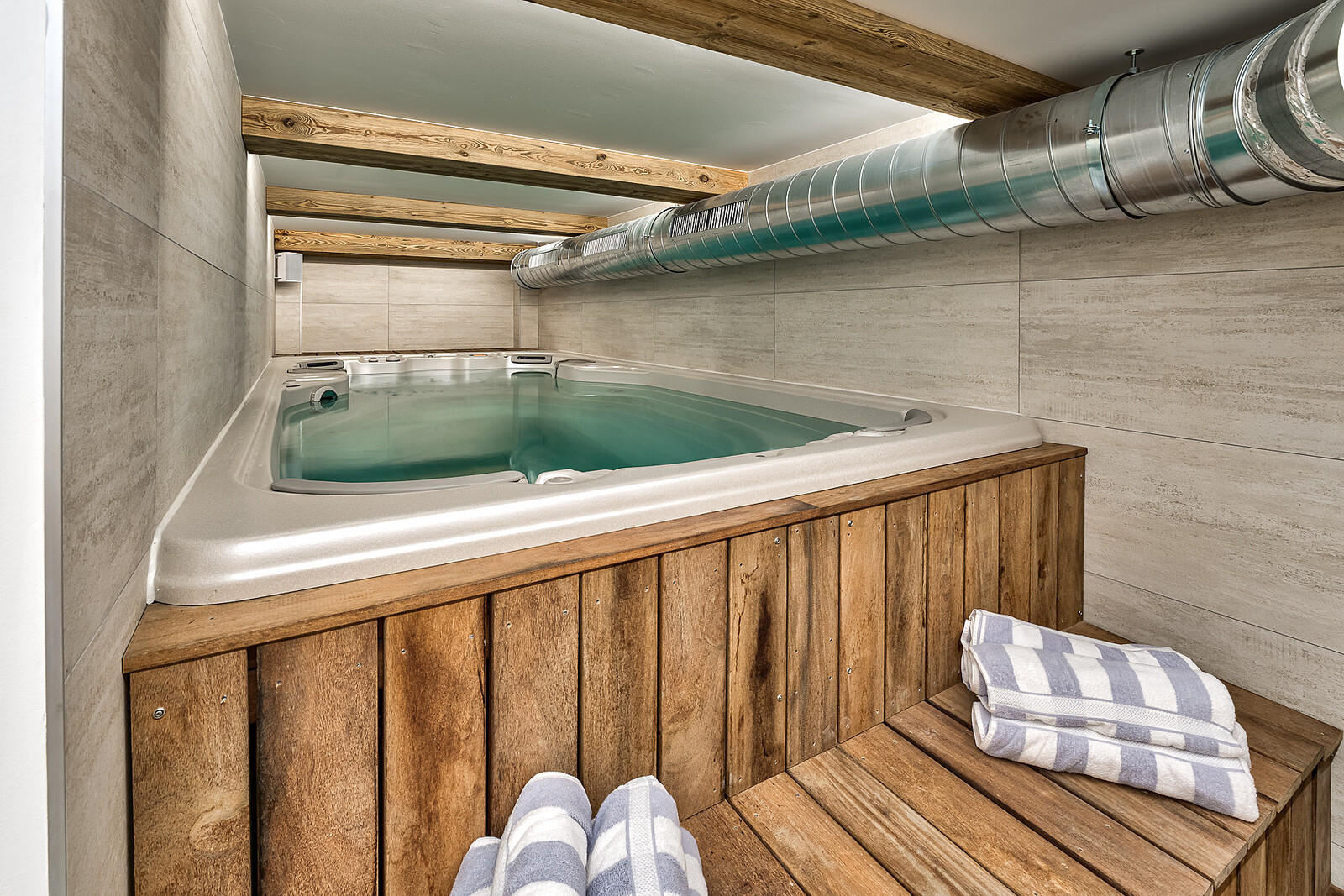 - Indoor sauna, indoor heated resistance pool (28°C) and outdoor hot tub to unwind after a full day on the mountain