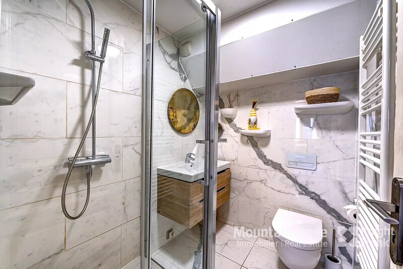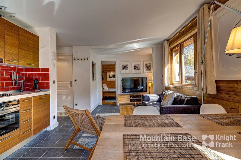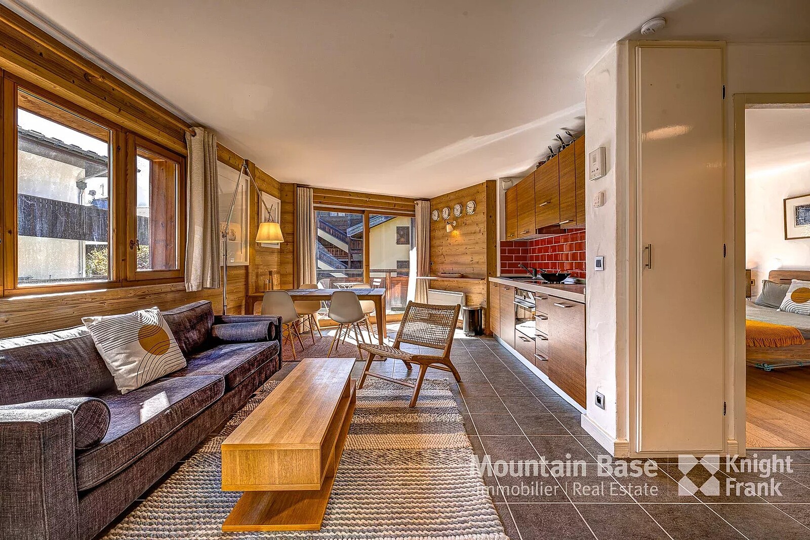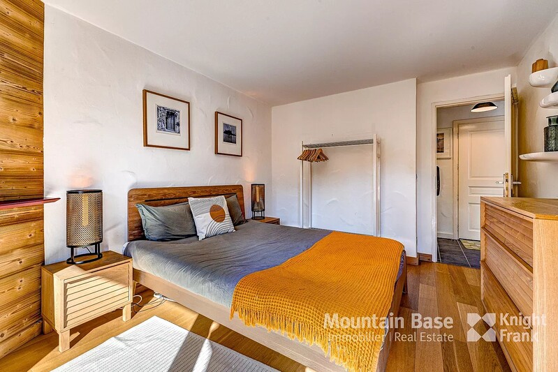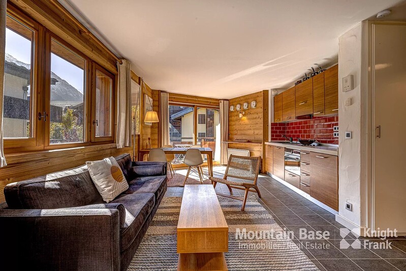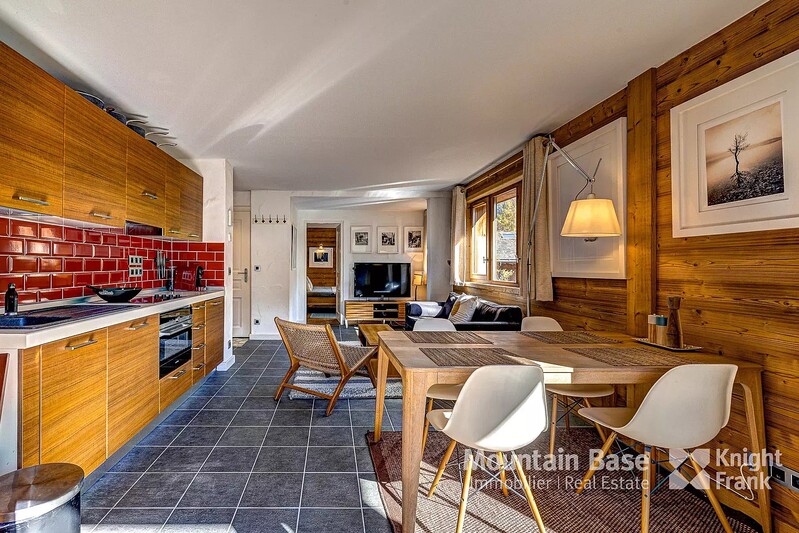 The apartment has been beautifully finished in a Montagnard style with a good-sized, open-plan living space. Both bedrooms have access to balconies, as does the living area. The apartment comes with a storage unit and a private underground parking.