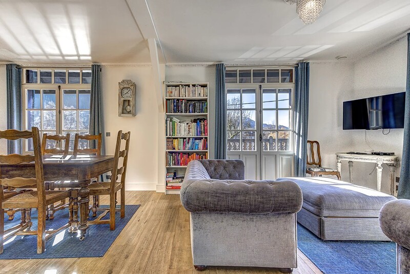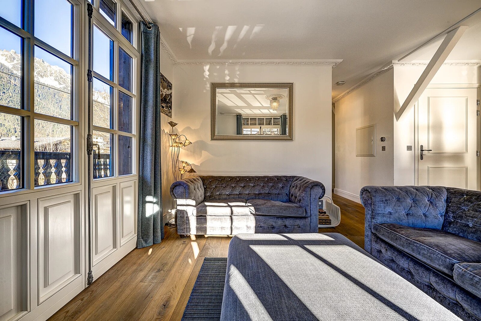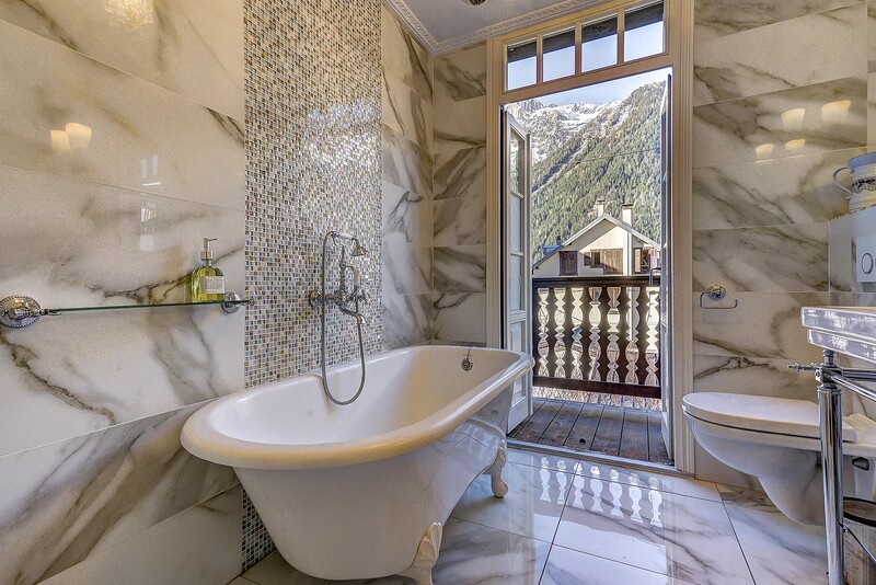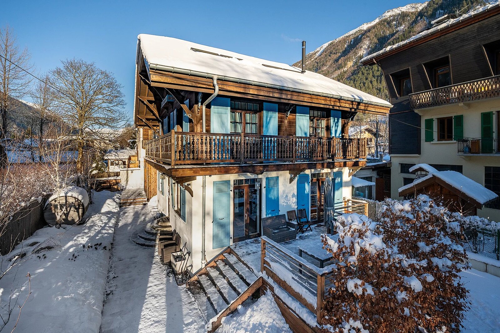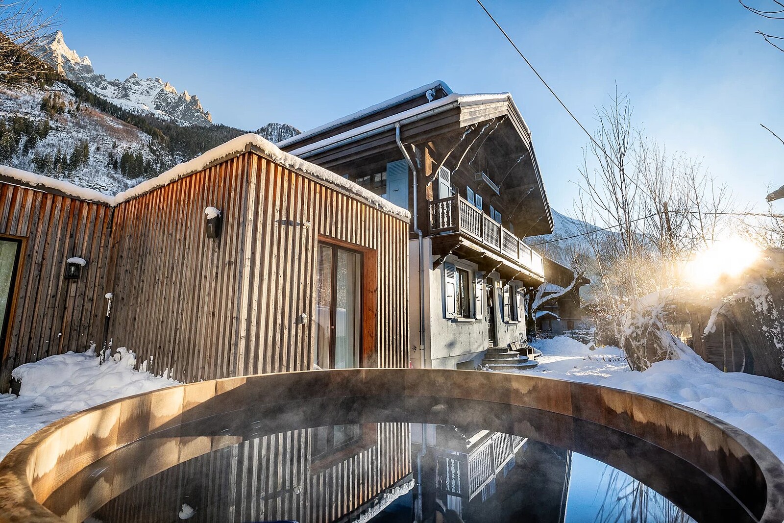 Chalet Blaitière is a beautifully stylish, 6-bedroom property in central Chamonix, currently used as 4 separate apartments but perfectly set-up to occupy as a single dwelling. Accessed via a private drive, just to the east of the town centre, the house has a good-sized terrace with jacuzzi and barrel sauna, plus balconies on the 1st floor.