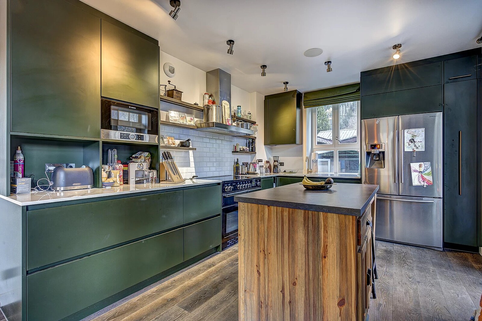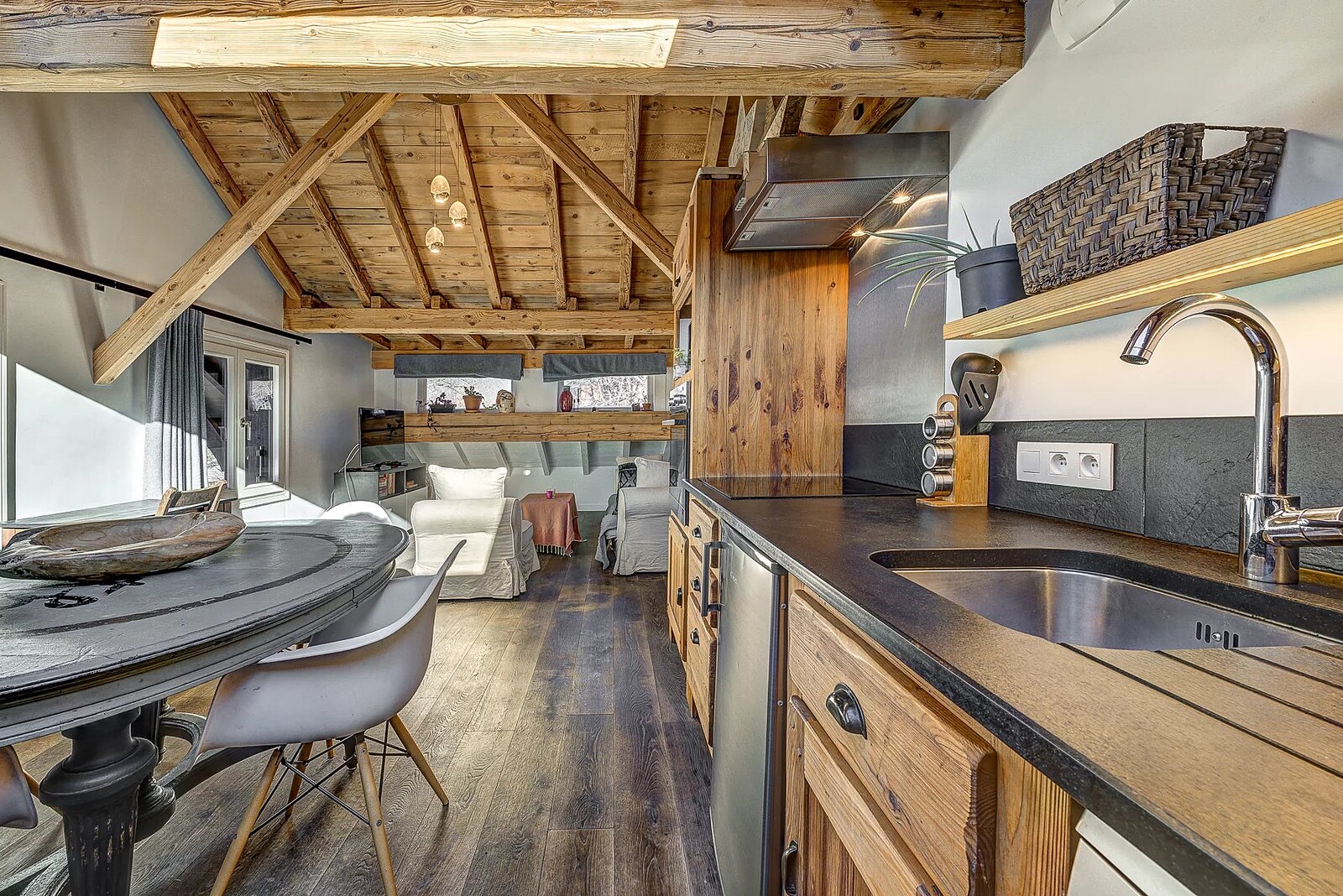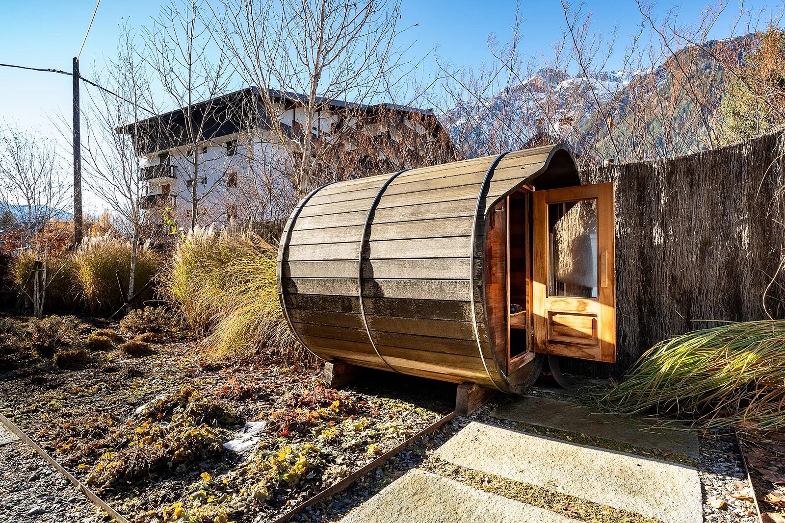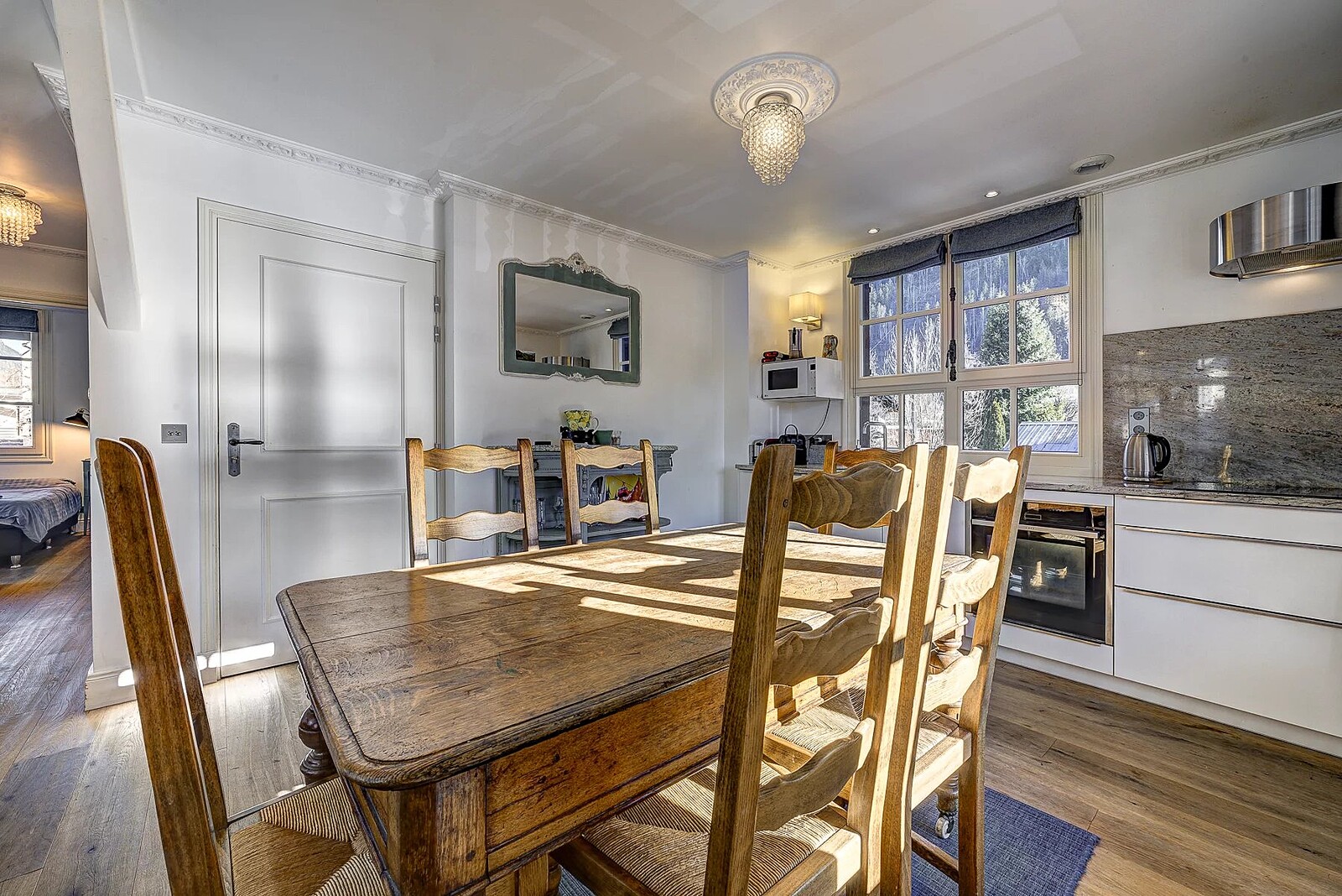 Chalet Blaitière is a beautifully stylish, 6-bedroom property in central Chamonix, currently used as 4 separate apartments but perfectly set-up to occupy as a single dwelling. Accessed via a private drive, just to the east of the town centre, the house has a good-sized terrace with jacuzzi and barrel sauna, plus balconies on the 1st floor.