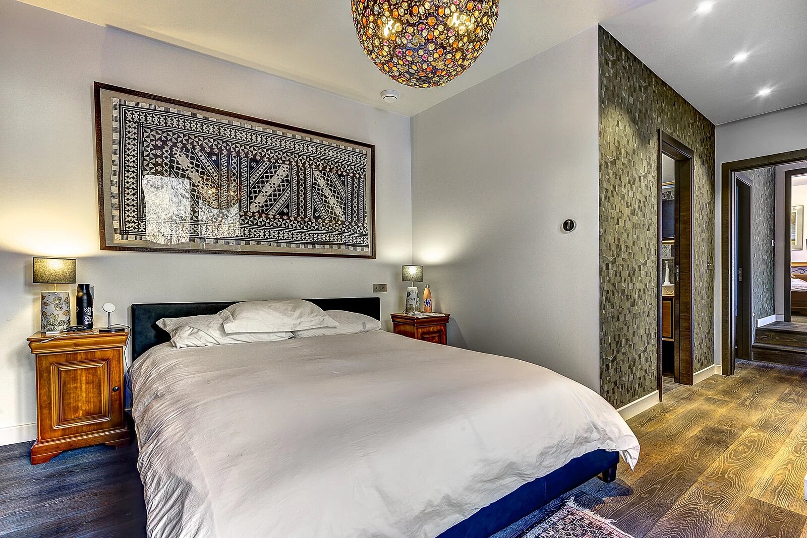 The ground floor is a 3-bedroom, 3-bathroom apartment with 2 living spaces and an open-plan dining/kitchen area, opening onto the terrace at the side and balcony at the front. The first floor is a 2-bedroom, 2-bathroom apartment with balcony on 2 sides. The second floor is a 1-bedroom apartment in the pitch of the roof with extra bunk sleeping space. In the lower ground floor, there is a studio apartment with bathroom plus laundry room and the boiler room.