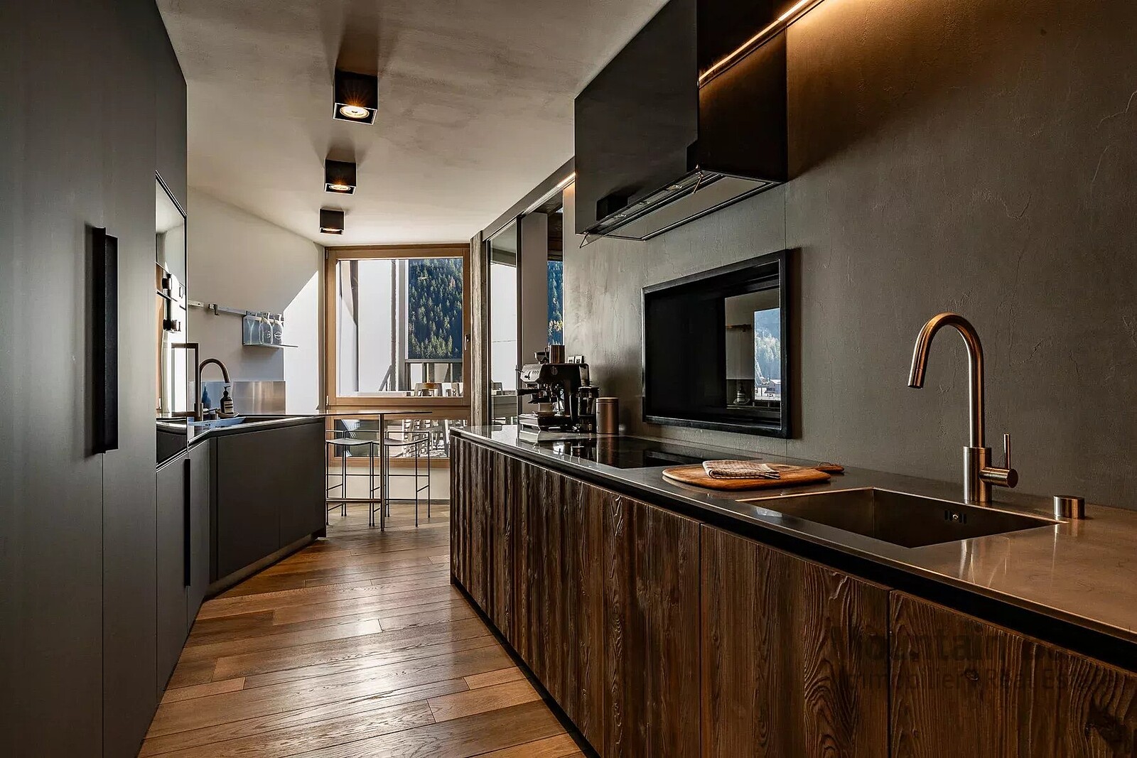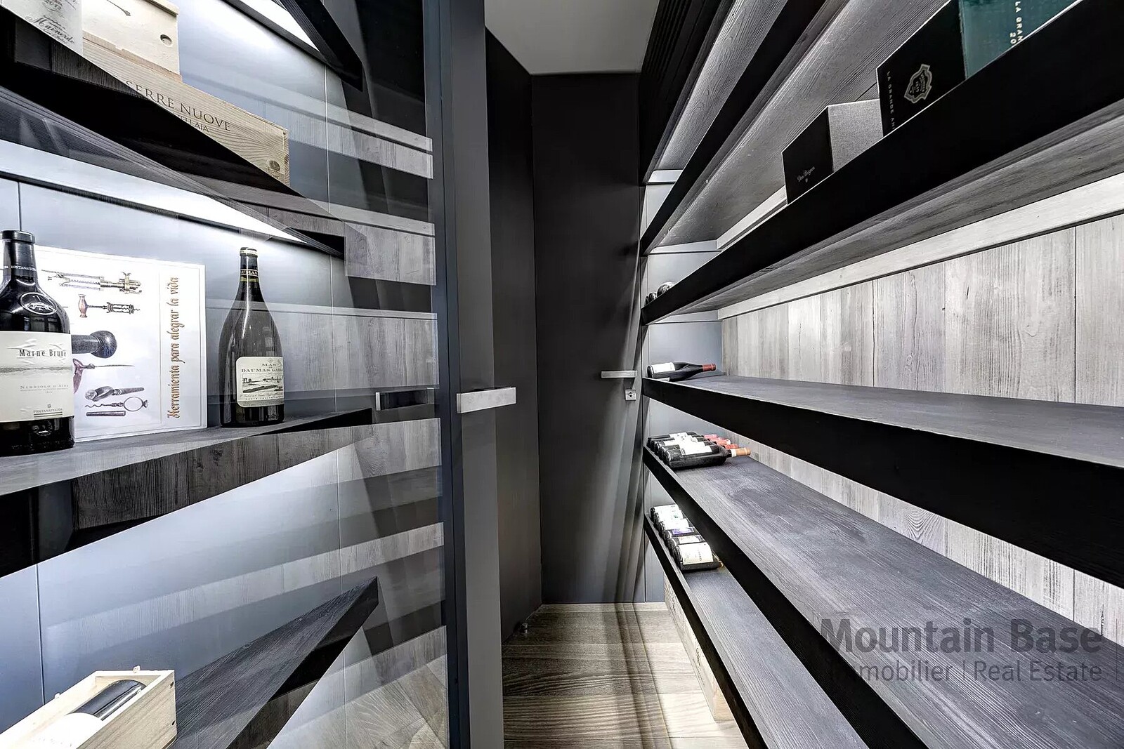 The apartment is served by a lift, descending to 2 underground parking spaces with a private storage cellar, fully-fitted as a ski/boot room.