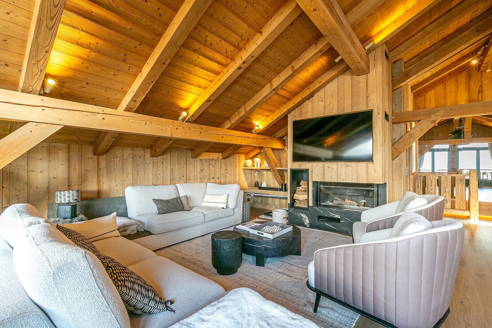 Pettoreaux is a gut-renovated, 5-bedroom duplex apartment in the sector or the same name, close to the Mont d’Arbois ski lifts and golf course. The voluminous living space, with cathedral ceilings, occupies the entire upper floor and opens onto a large balcony with fabulous, open views across the valley. The lower floor comprises the 5 ensuite bedrooms, including the master quite with balcony and bunk room.