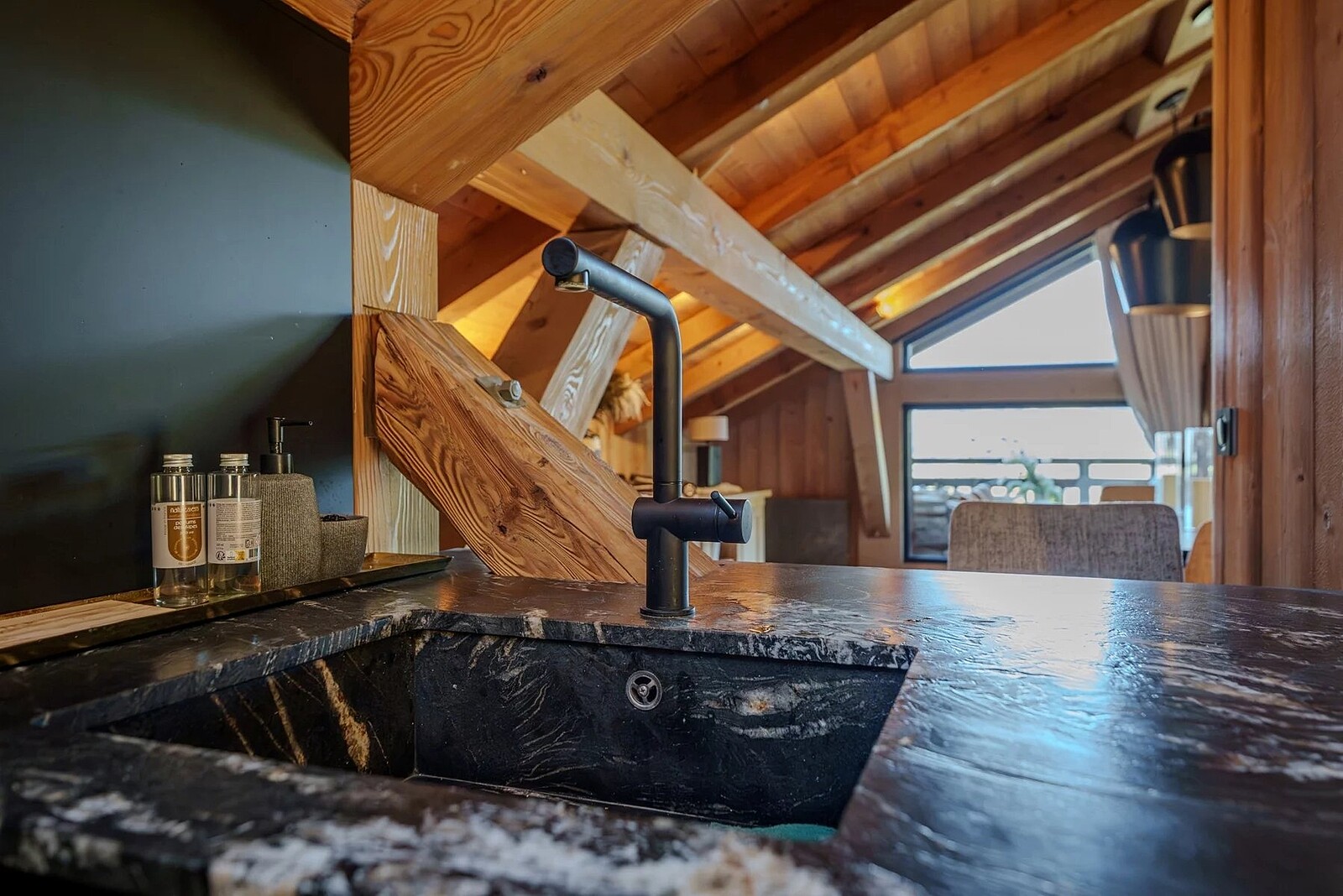 - Double-height, open-plan living space
