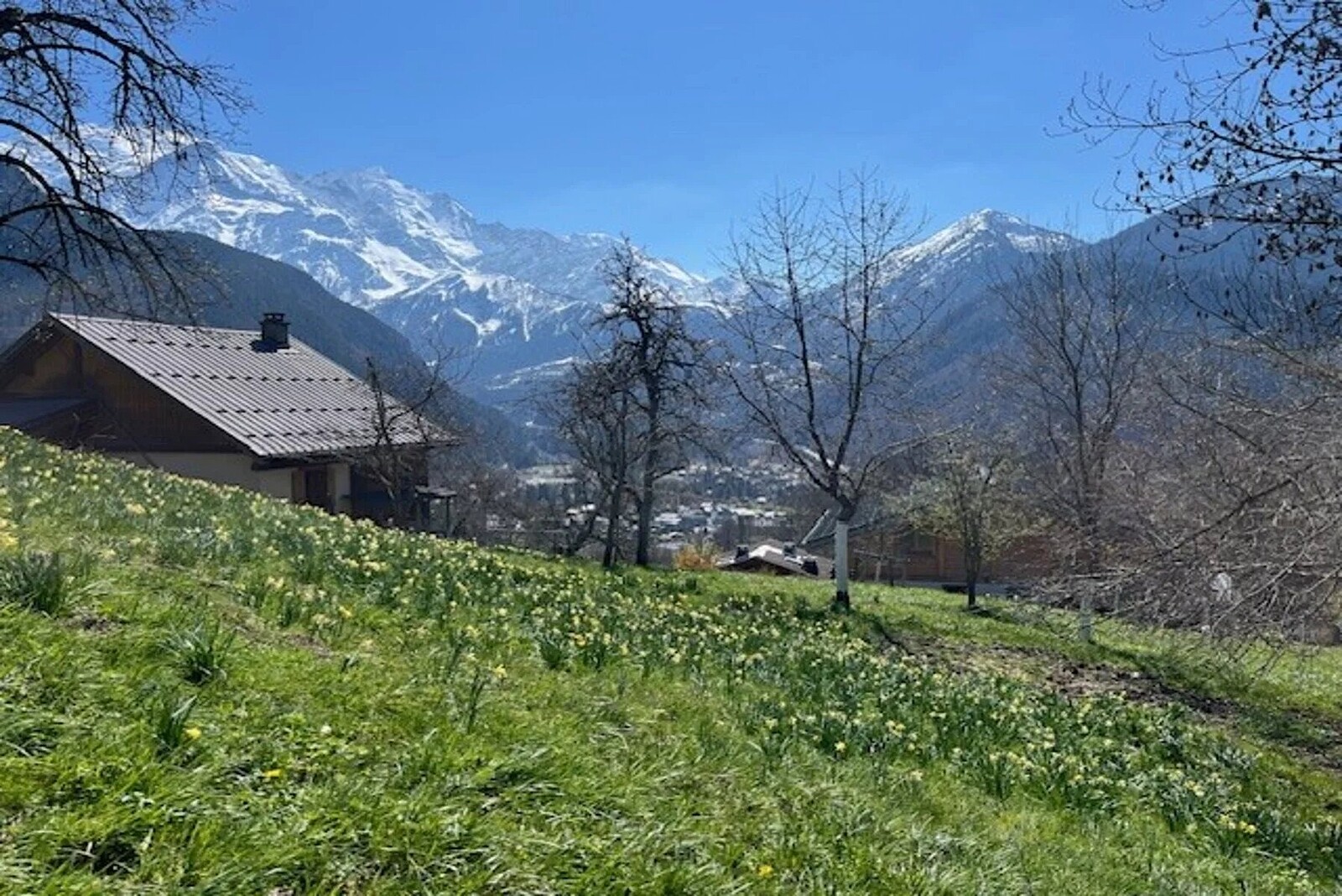 Terrain Daffodil is a plot of land set on the sunny hillside of the alpine village of Servoz. The land is already equipped with utility connections and clearly defined boundary lines, simplifying the process for development. The land offers a peaceful setting with excellent year-round sun exposure and views of the Mont-Blanc massif. Located in a quiet residential area of family homes and traditional farms, it enjoys both privacy and easy access via a small, quiet road, while remaining within 10 minutes of Les Houches, 15 minutes of Chamonix, and under an hour from Geneva Airport.