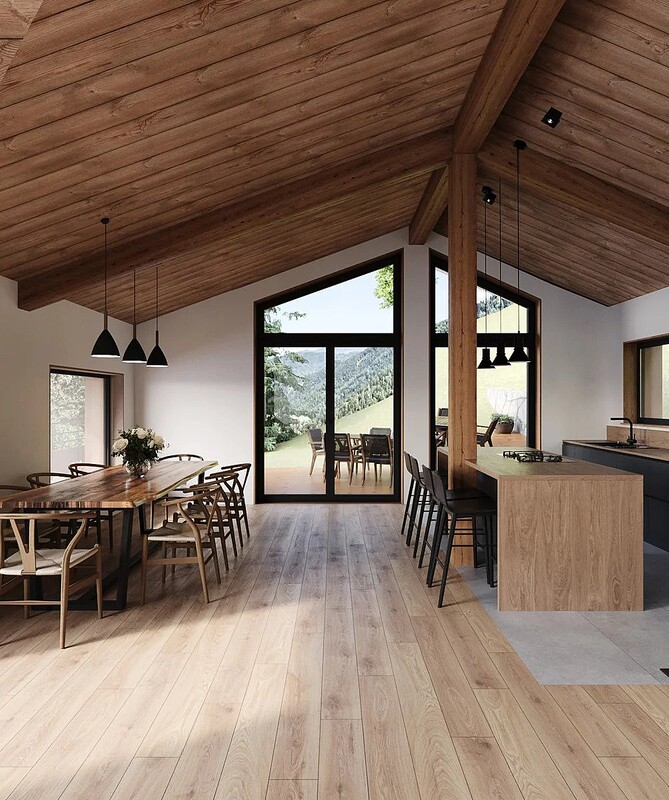 - Proposed chalet includes double garage, ski/bike room and south-facing terrace