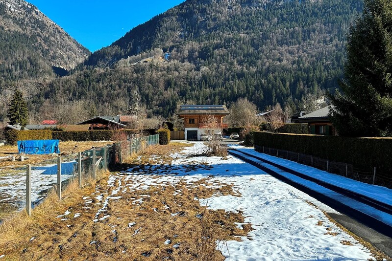 This is a good value, flat plot in a great location for those who need easy access into the Chamonix Valley, or the Arve Valley and beyond to Geneva. Subject to planning permission, the plot could accommodate 1 or 2 chalets, or a chalet mitoyen. Although narrow, we calculate that a chalet of approximately 7 metres depth could be built, with decent area remaining for a garden.Agency fees