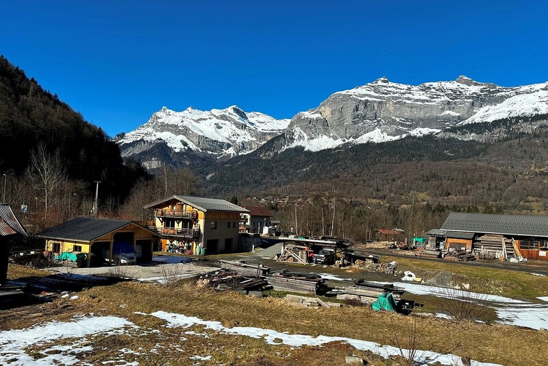 The plot is a very short walk from the station, giving easy access up into the Chamonix Valley as well as down to le Fayet. It is also close to the autoroute junction, for links to the Arve Valley and Geneva.